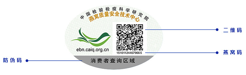 燕窝码:由16位数字组成,每枚溯源标签拥有唯一身份编码。